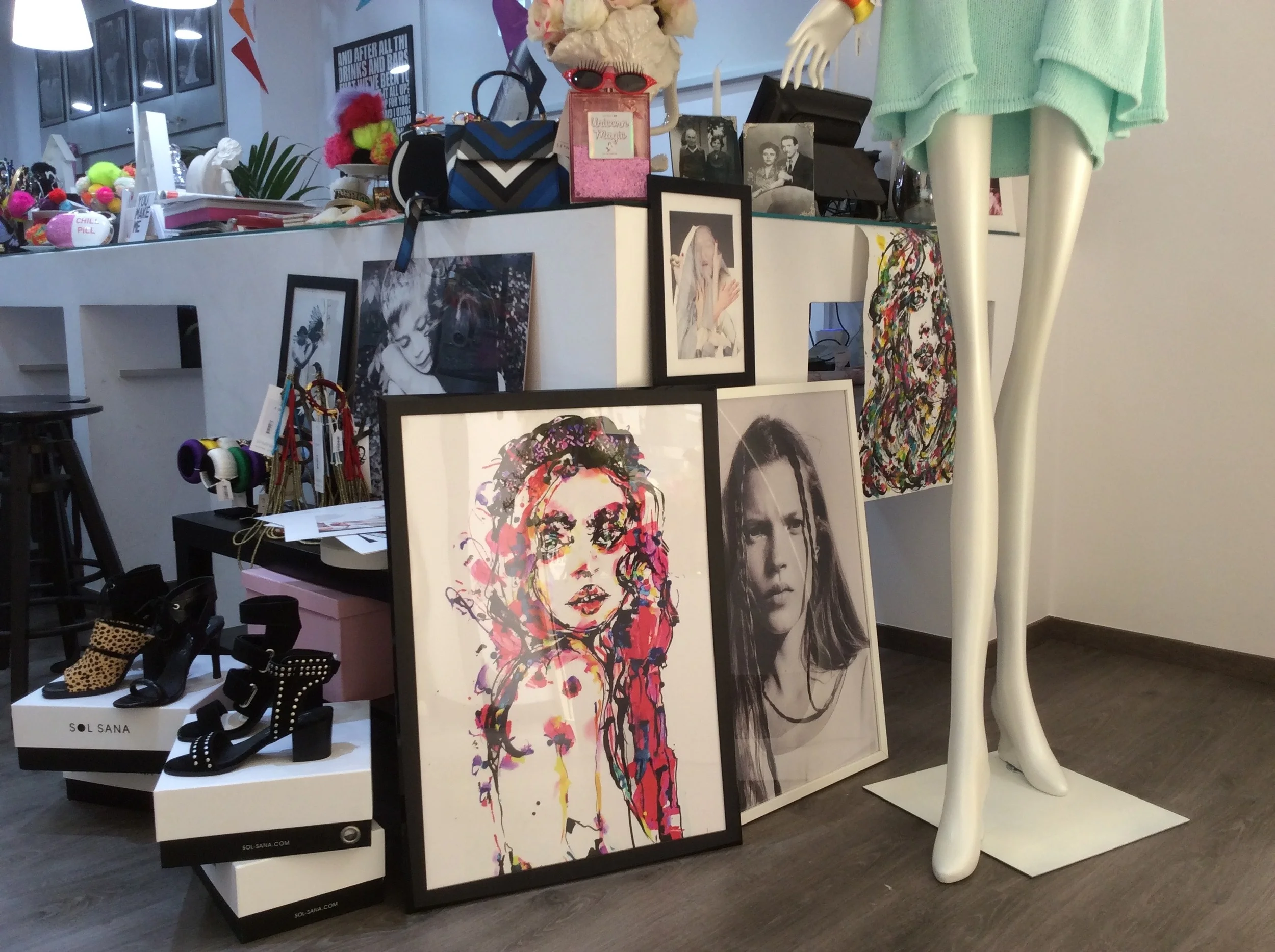The space showcases Josefien’s personal hand painted portraits which depict female characters drenched in colour, painted with fluid lines in an expressionist reminiscent style. The emotionally charged paintings are exhibited alongside a vast collection of fashion photographs that capture dramatised tales of youth and flamboyant teenage dreams - surrounded by Hlaotvee’s fashion collection. Some of Josefien’s work is framed and hung on the wall, whilst other pieces are arranged in stacks on the floor, following a laid-back mantra which coincides with the everything goes aesthetic of the space. In this way Josefien establishes an alternative way of curating contemporary art, which is heavily inspired by the realms of fashion and theatre and is infused with drama and passion.